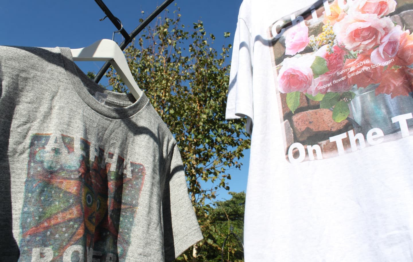 オリジナルデザインやイラストで作ったTシャツやGoodsがあります。Tシャツ・手拭い・伊豆人Tシャツ・手のひらTシャツ・キーホルダー・缶バッジなど他には無いここだけの伊豆のお土産にいかがでしょうか?